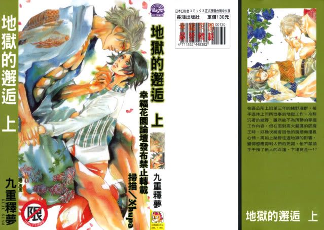 九重老師的畫面算是精緻的, 我真的很懷疑她真是第一本作品嗎? 若不是已經過同人長久的磨練, 圖能畫成這樣我真蠻佩服的, 就像當年第一次看到SCARLET時的感覺。而或許是因為背景為地獄關係, 老師書中的網點堆為暗色狀的, 也使得作品的整體步調更顯壓抑, 但也因此加深了故事給人的感觸。好期待老師之後的作品, 但也很怕老師會像一些從出道作後便一路下滑的作者一樣另我失望。只希望這次的感覺沒錯, 也希望能早日再見老師作品。但希望老師不要再取一些那麼難的名字了(默) 害我一直查字典…