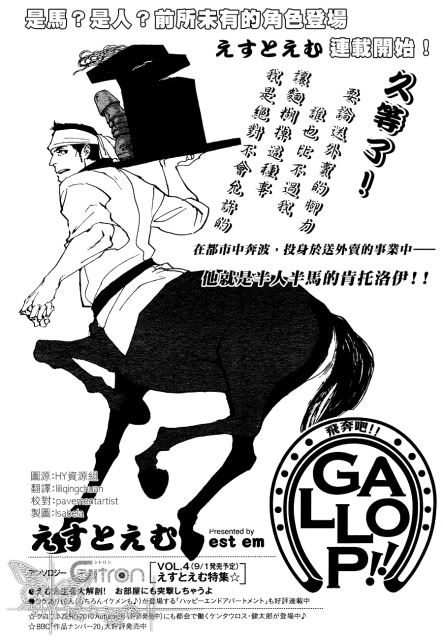 兩位同樣也是獨具自我特色的作者。看到老師新作標題是GALLOP時我雖然當下便出現馬奔跑的畫面,