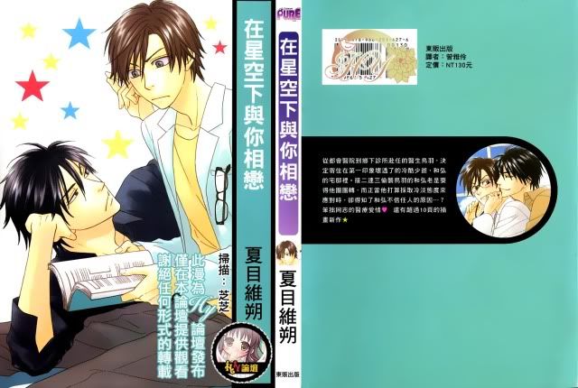 每次在看夏目老師作品時, 我總會想, 老師到底是哪裡吸引我? 雖然老師的畫風純熟又好人物也很有特色, 但卻無法說是讓人一眼便驚豔的。而老師的故事雖然每個都讓我喜歡, 但真要說卻又不是什麼舉世大作, 甚至時常是作品裡隨便挑都一堆的故事線。但夏目老師或是便像山之町一樣。雖然是個看似不起眼的小地方, 但裡頭有阿一有阿和有千鶴有梅奶奶。每個角色雖看似樸實卻又是如此的鮮名。他們就像是在我們日常生活中會遇見的人似的。老師的作品沒有華麗與誇大, 有的只是一篇篇踏實卻又溫暖的故事。這故事裡有歡樂有淚水有努力也有痛苦。兩個受傷互相幫忙的作品我不是沒看過。但這本卻能讓我微笑著看完它。我喜歡御姐般大咧咧的千鶴, 我喜歡像大哥般溫厚老實的阿一, 我也喜歡看似一把老骨頭但卻能活力十足的與大家喝酒的梅奶奶..也喜歡那名會臉紅會哭泣會吐槽卻又認真的羽鳥醫生….當然還有我們的彆扭孩子阿和。老師的故事就像是這樸實村莊中, 看著看著卻會突然出現那片星空一般。星空的那一幕, 不僅羽鳥, 連我也在翻頁後瞬間出現了感動。那畫面真的是太美了……. 當然我喜歡老師的原因也是因為她筆下的人物實在吐槽點太多又太會吐槽了, 導致每次看她的作品總覺得歡樂無比(笑)
