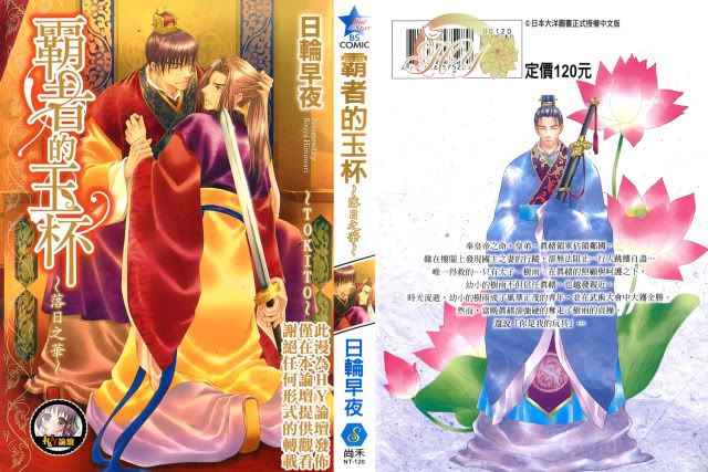 零零雜雜的寫了四千多字, 我卻發現我在寫完後比寫前更愛這部了。劇情我已經提了那麼多就不再說了。老師的畫風, 在看過這部後應該可以清楚知道老師的畫技有多成熟。裡頭服裝應該是自創加上參考的, 但在查了下資料後感覺是以唐朝為較大參考(如果錯了請告訴我>_<) , 從背景到整體, 可以看出老師下了不少心血在上。除了知道這是日本漫外, 老師的設定讓我相信這是部以中國古代為背景的故事。老師的人物看過的都知道啦, 長得差不多卻超好認的XD 但這次故事讓人一口氣看足正太, 美少年及美青年, 所以大家快刪掉老師只擅長畫正太的記憶吧XDDDD 老師的人物臉蛋雖算纖細風, 但她的人物體格可不是文弱派的, 看過的便知道該有的肌肉都有。而這部裡雖只出現少少的武打戲, 但老師動作的流暢度卻讓我看得很過癮。除去上頭那些我說過喜歡的場面, 這本書裡出現太多我愛的場面了。老師對分鏡的掌握及背景的拿捏, 我都非常的喜歡。樹雨與青砥對戰時以黑影所帶出的強烈及停格感。真赭向樹雨表達心意時倒映在蓮花池上的影子….裡頭有太多太多我喜歡的東西了, 真要全部介紹大概說不完, 只能請大家去看這部了。或許日輪老師的漫畫不及類似故事的小說要來得狀觀, 但就算只是欣賞畫風, 我也覺得值得。也希望, 我有清楚傳達到我對這部漫畫的熱愛。提下封面, 封底的青砥配上蓮花好美, 但重點是封面樹雨的腳怎麼看都太長了吧XDDDDDDDDDD