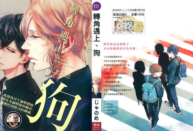 轉角遇上狗的故事如果單以文字來描述, 算是包括了BL裡最常見的幾種元素。校園背景、友誼之上情人之下、忠犬等等。不知為何BL故事裡常出現像小津犬這般的狗(笑) 僅管單從故事來說哪一點都不特別, 但じゃのめ老師對描繪角色間的日常與感情間的細膩頗為擅長, 讓人在看故事時可以感受到主角兩人間的掙扎與煩惱。